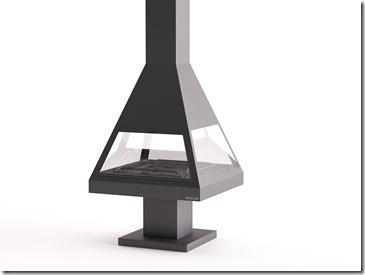 Decorative and heating fireplace suitable for installation in the center of a room. Ideal for medium-sized apartments. It features two fixed glass panels and two that can be opened.