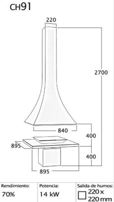 - Smoke outlet pipe: ø 220 mm