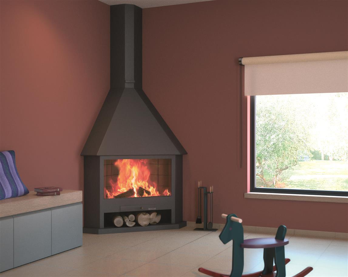 Corner Wood-burning Fireplace C-300-R 14 kW – FM Calefacción
