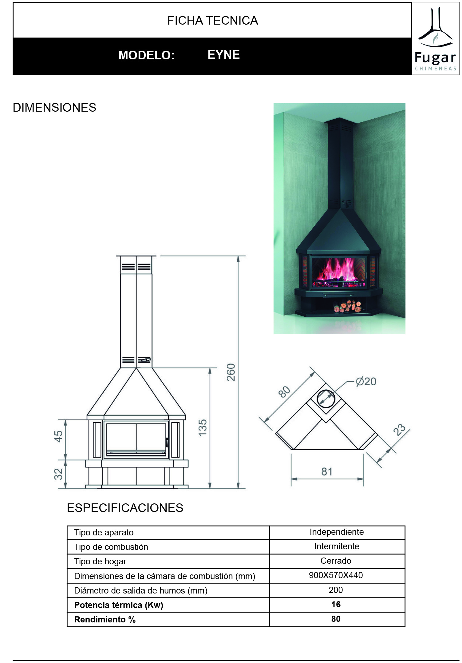 Cheminée d’angle à bois EYNE 16 kW – Fugar