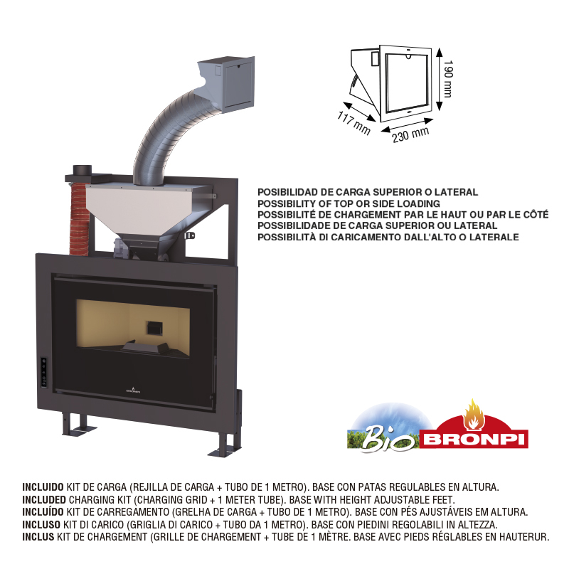 Cheminée à granulés ventilée avec une profondeur de seulement 26,5 cm. Unique en son genre, elle convient aux installations même dans les couloirs où l’espace est limité. Livrée avec un kit de chargement frontal ou latéral.