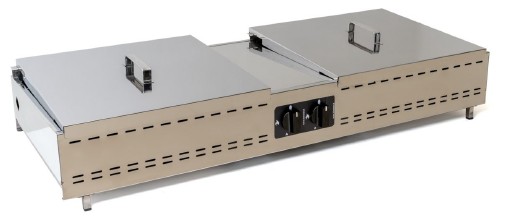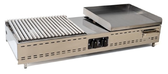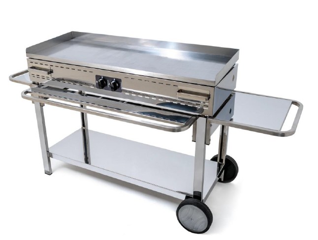 La piastra ha uno spessore di 10 mm ed è in acciaio naturale, che è un buon conduttore di calore; infatti , mantiene la tempratura omogenea su tutta la superficie. Disponibile la versione con piastra o con griglie (Canaline e Tondino).