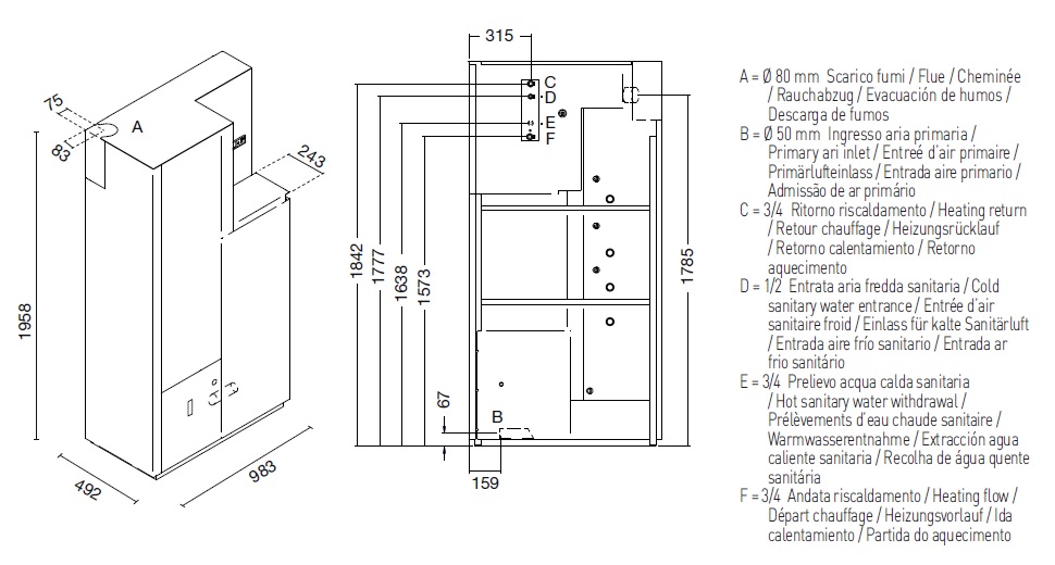 • Distanze minime da pareti infiammabili: lato: 25 cm – retro: 25 cm – fronte: 100 cm