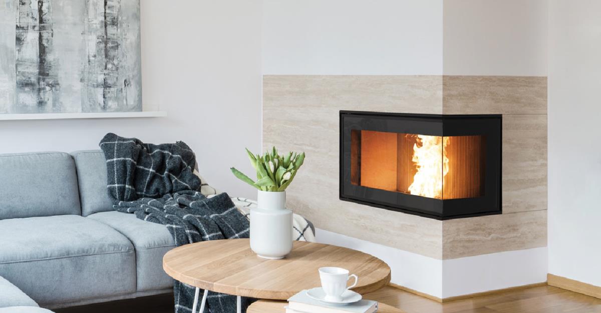 Caminetto a pellet ad angolo completo GIOTTO 12 kW – Eva Calor