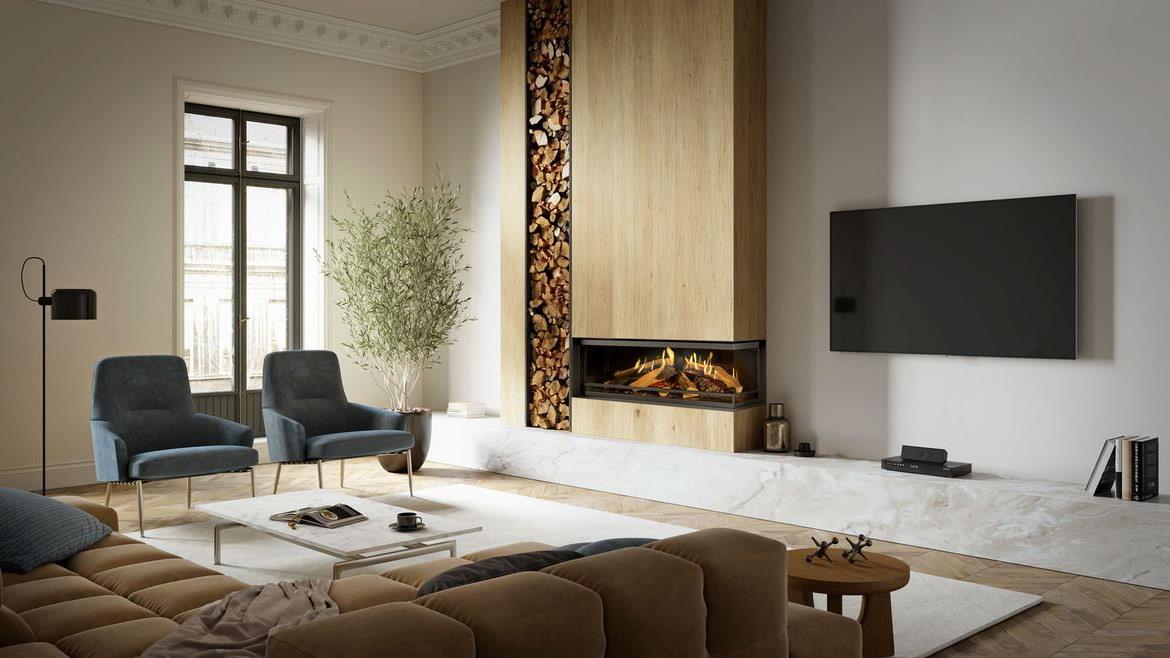 Immaginatevi di essere davanti ad un vero camino, sentite il suono del legno sul fuoco, guardate la fiamma muoversi tra le braci, sentite il calore diffondersi nella stanza immediatamente. Tutto questo con un semplice gesto, senza dover alimentare il braciere, senza fare attenzione alla fiamma e dover pulire a fine serata. Abbiamo lasciato solo il piacere del fuoco, l’ipnotico ballo della fiamma, senza nessun altro impegno se non quello di rilassarti di fronte al tuo camino.