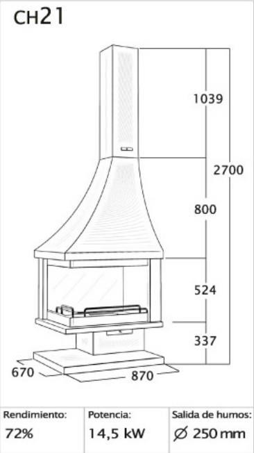 Camino a legna angolare C-300-R 14 kW – FM Calefacción