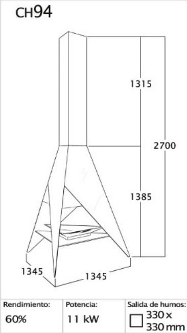 Camino a legna a parete c/forno C-300-H 13,5 kW – FM Calefacción