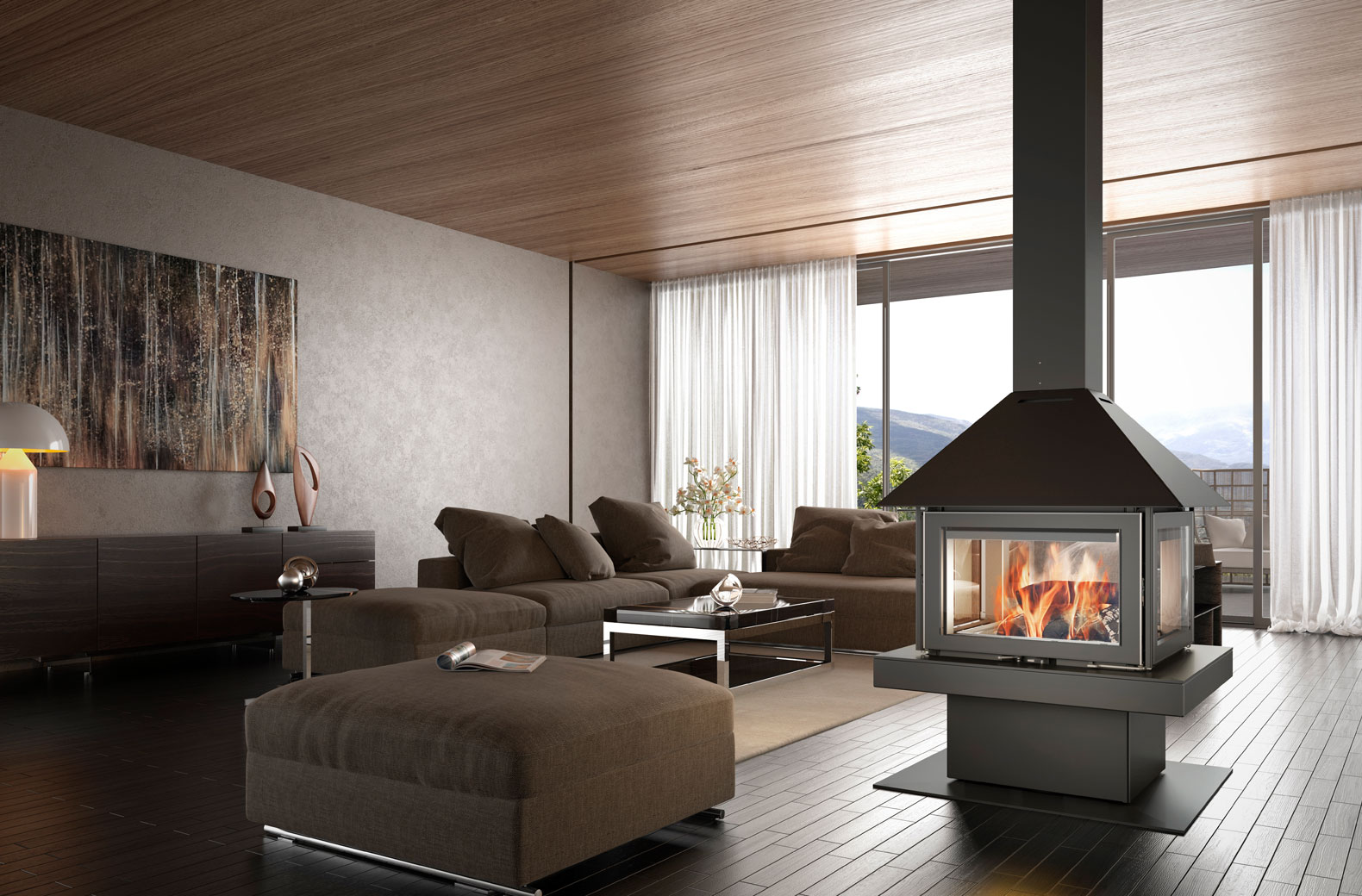 Camino a legna centro stanza GISELLE 90 18 kW – Rocal