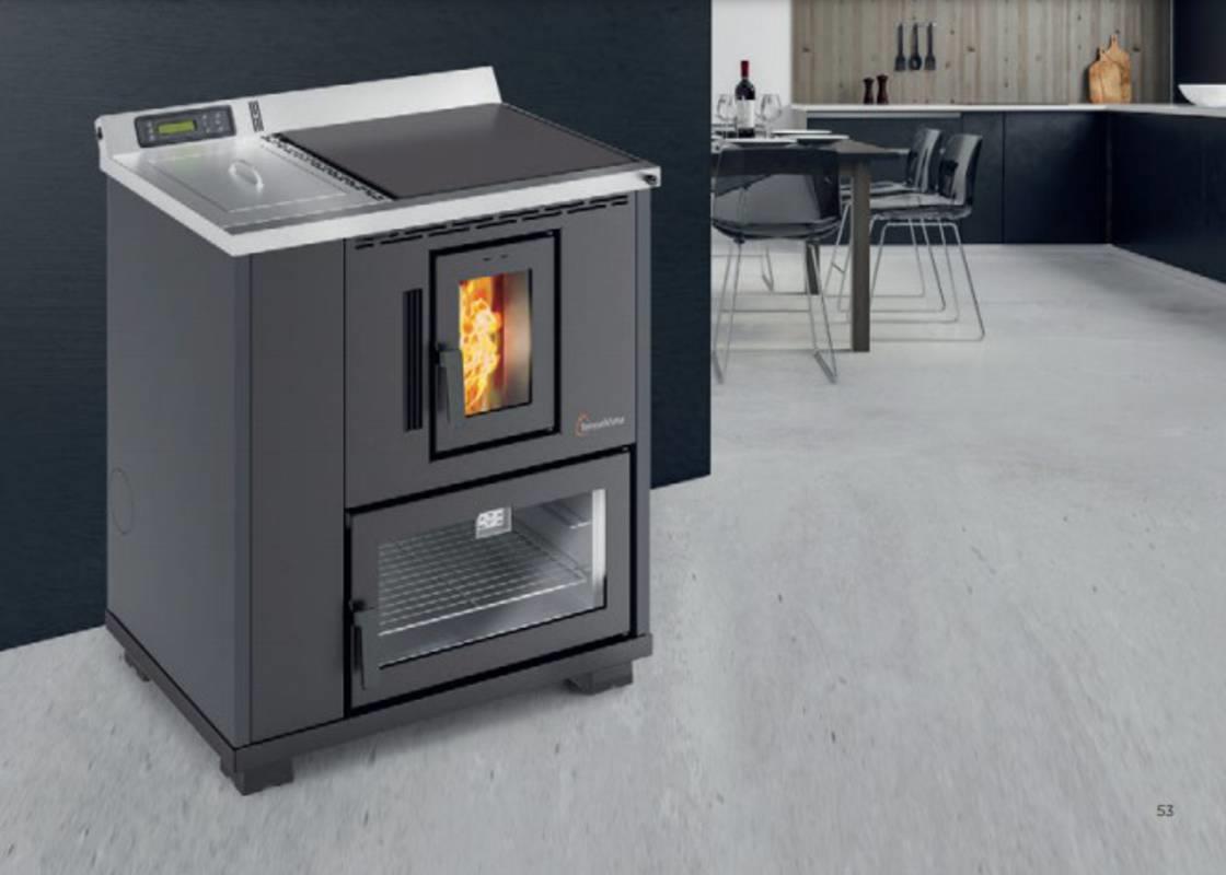 Cucina a pellet, completamente automatica, ideale per riscaldamento ambiente e cottura dei cibi, sia sul piano cottura che nel forno.