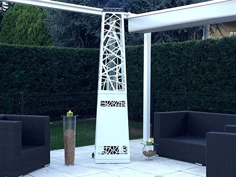 Si tratta di un RISCALDATORE DA ESTERNI funzionante a Pellet di Legna.
